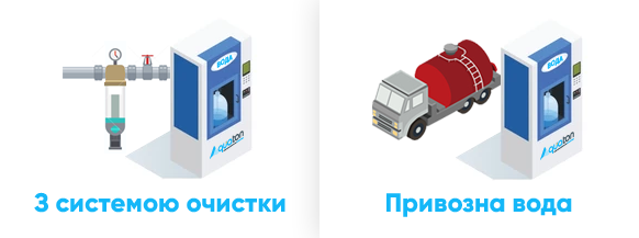Автомати із системою очистки є зручним рішенням для клієнтів без досвіду роботи у бізнесі з реалізації питної води. Автомати із системою очистки під’єднуються до центральної мережі водопостачання та центральної каналізації. Для їх запуску в експлуатацію, необхідне підключення до електричної мережі та виконання додаткових сантехнічних робіт, спеціалістами відповідної кваліфікації.